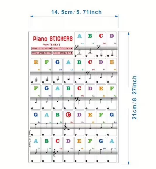 Piano stickers, musical notes, music theory, piano students, piano keys 88/61/54/49, keyboard, accordion, treble keys