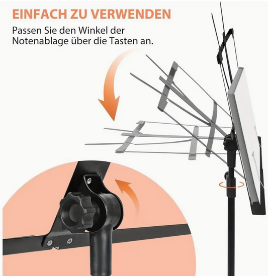 Metal Music Stand, Foldable, Black, 140 x 56 cm, Music Accessory