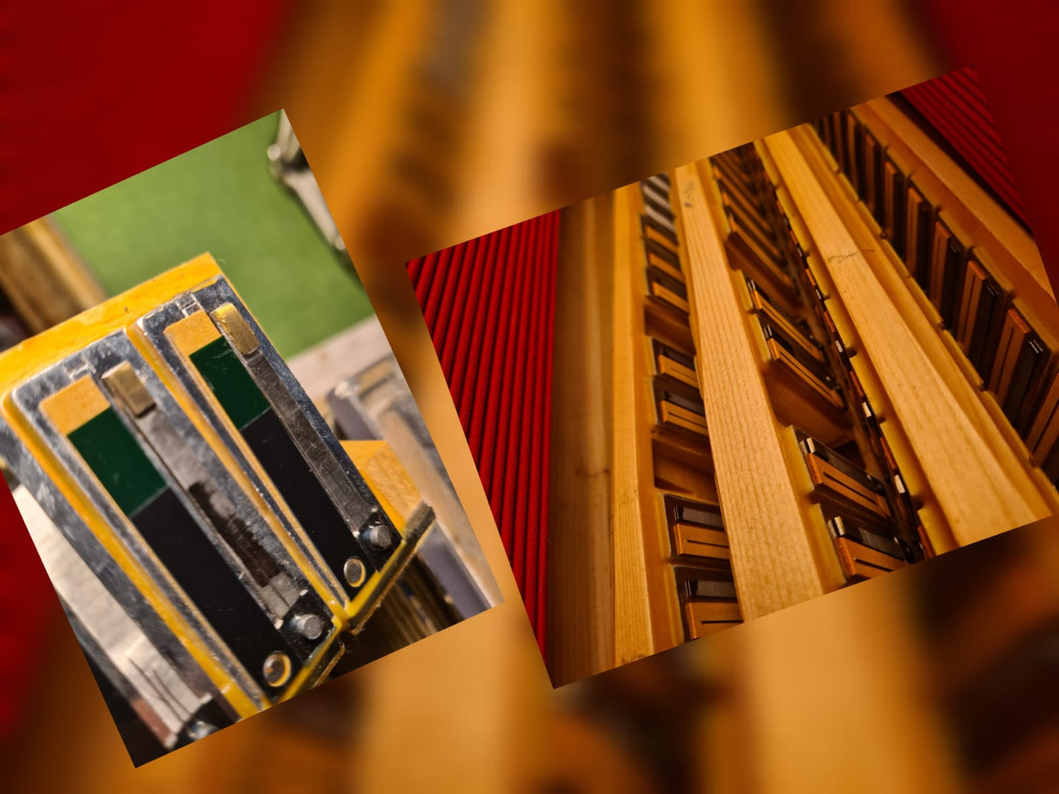 Stellen Sie das Akkordeon Horizontal auf seinen Füsschen ab, das schon die Struktur der Stimmstöcke.