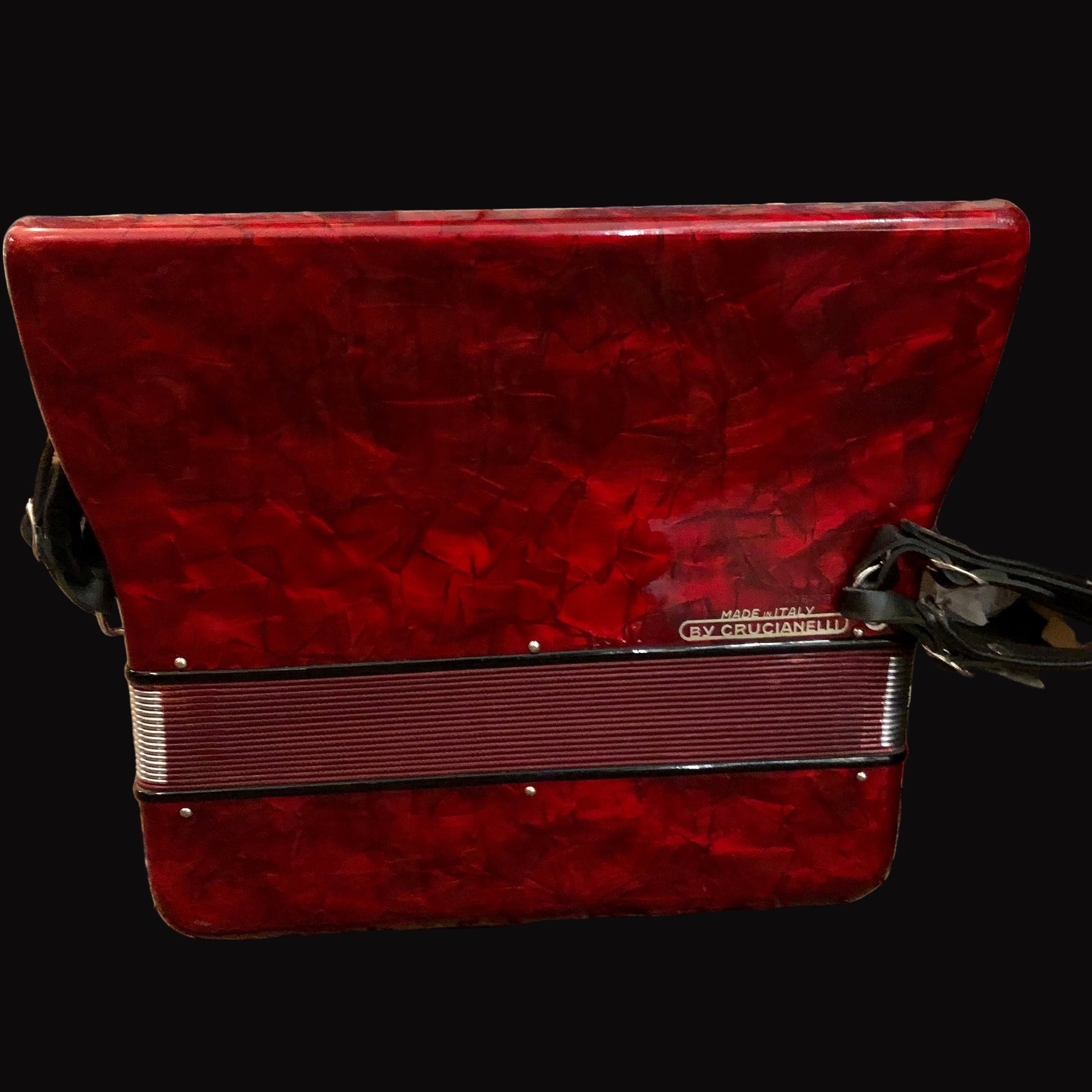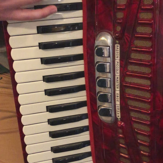 Gebrauchtes Akkordeon Crucianelli 96 Bass Sonett mit 37 Registern in leuchtendem Rot – italienische Handwerkskunst in ausgezeichnetem Zustand. Alle Register schalten präzise, sämtliche Tasten und Bässe funktionieren einwandfrei. Der Balg bietet konstanten, zuverlässigen Druck für dynamisches Spiel. Dieses Instrument spielt wie im Video demonstriert und eignet sich hervorragend für ambitionierte Anfänger, Reisende und Fortgeschrittene und Profis, die ein hochwertiges, spielbereites Akkordeon suchen.